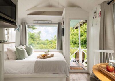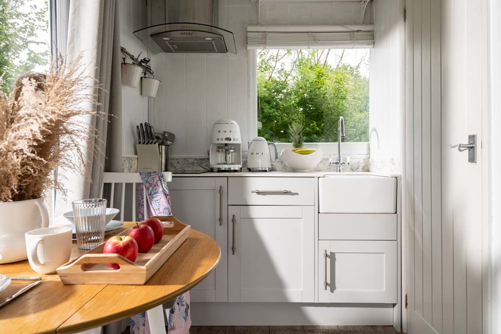 Step inside to find an open-plan living area, a fully equipped kitchenette and a comfy double bed to snuggle up in.