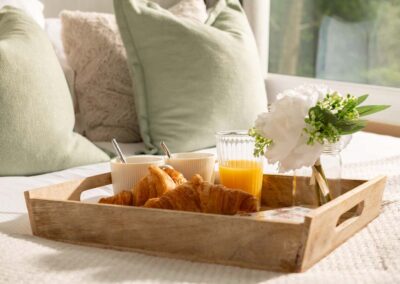 - Kitchenette: fully equipped with electric hob; microwave; fridge freezer; coffee maker; and Belfast sink.