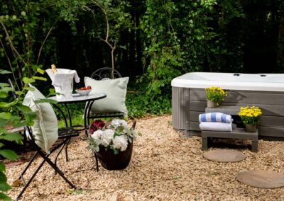 If you’re looking for romance or relaxation, Honeycomb Treehouse offers the perfect secluded setting, complete with a luxury hot tub to kick back in. There’s a table and chairs in the garden, ideal for enjoying a cuppa or some fizz and nibbles. You can always ease yourself back to reality with a romantic walk through our woodland.